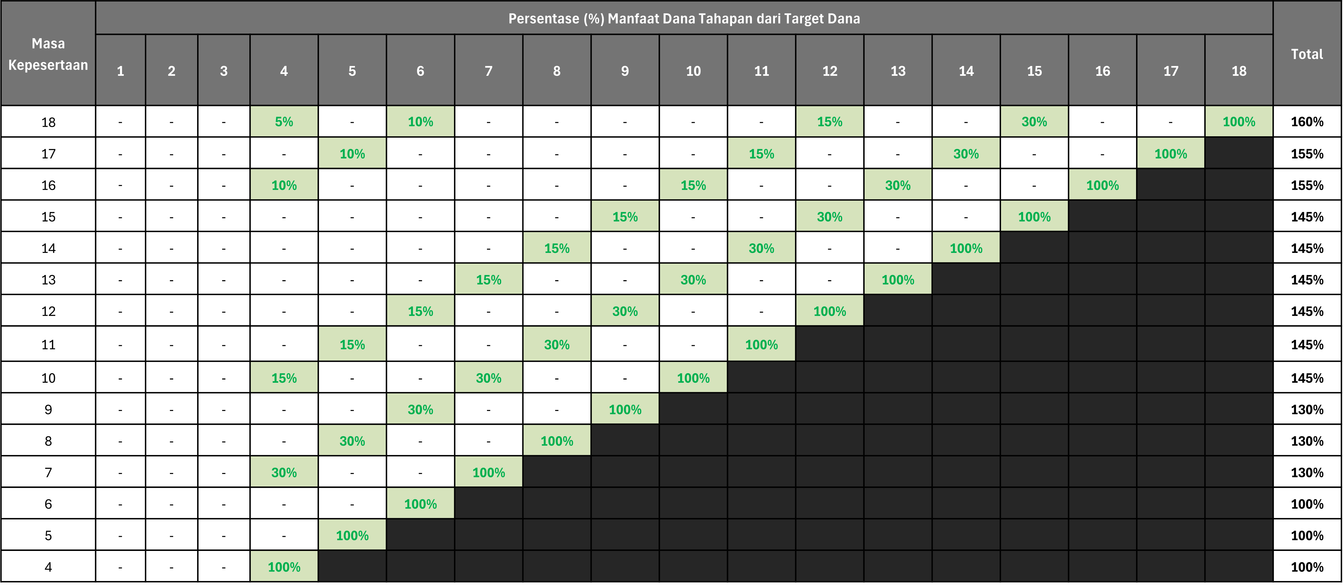 Pembayaran Manfaat Dana Tahapan untuk mendukung kepastian tercapainya rencana Pendidikan, rencana Pensiun atau perencanaan keuangan lainnya.