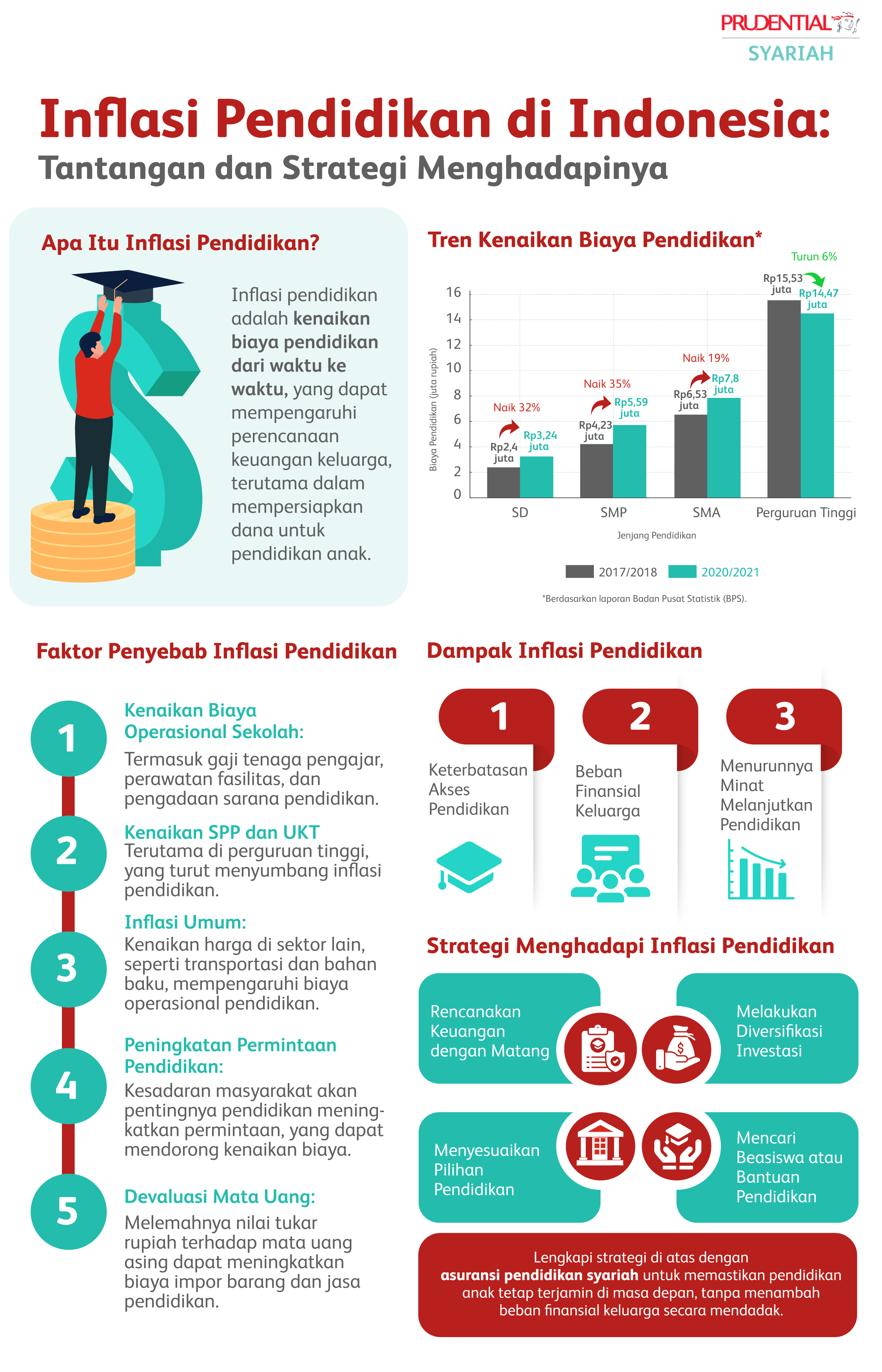 Inflasi pendidikan di Indonesia menunjukkan tren peningkatan yang signifikan, yang berpotensi membatasi akses masyarakat terhadap pendidikan berkualitas. Dalam menghadapi situasi ini, perencanaan keuangan yang matang menjadi langkah penting agar anak-anak tetap mendapatkan pendidikan terbaik tanpa terkendala biaya. Salah satu solusi strategis yang dapat diambil adalah melalui produk asuransi pendidikan syariah seperti PRUCerah dari Prudential Syariah.