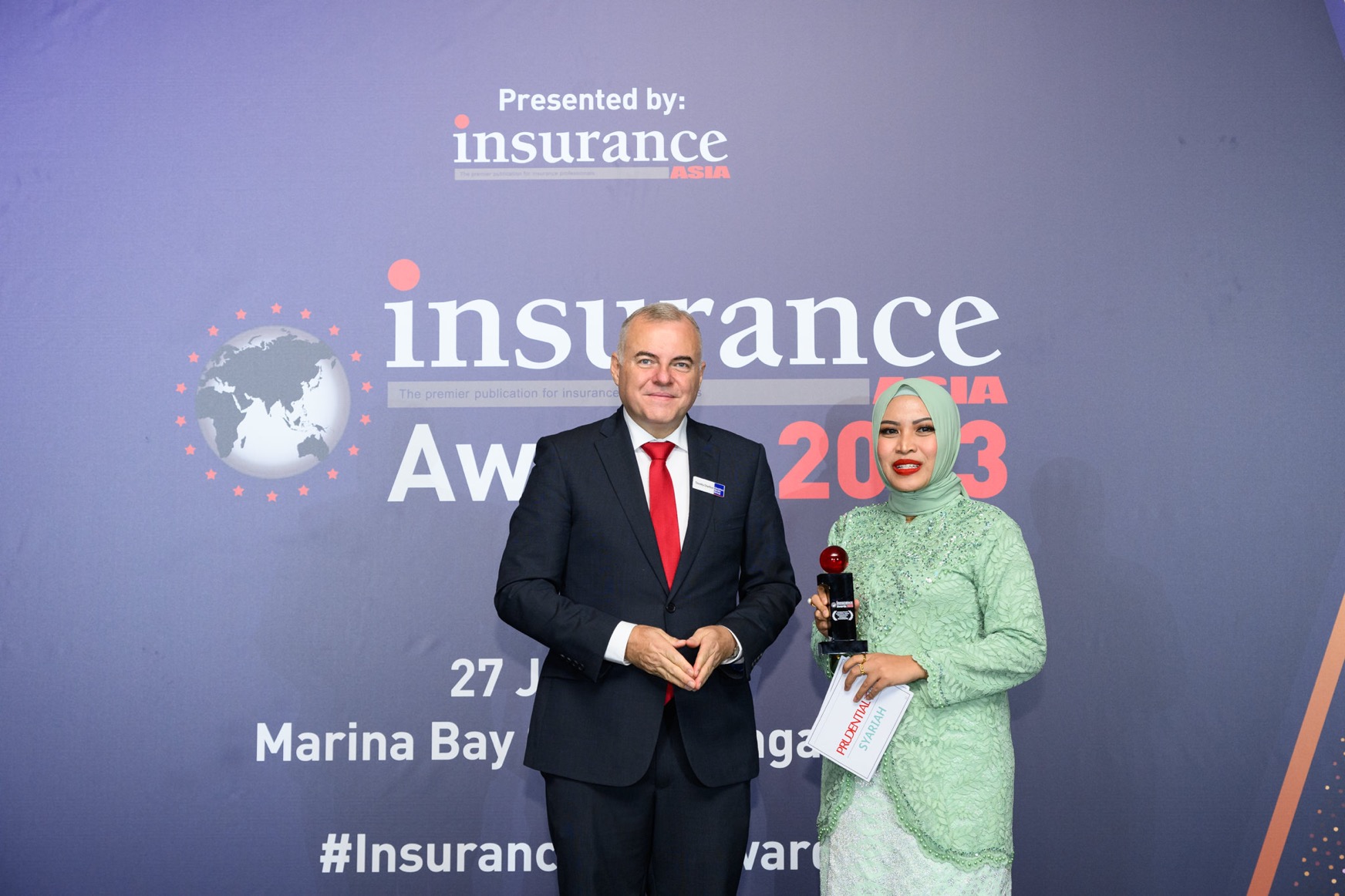 Insurance Asia Awards 2023 merupakan ajang penghargaan bergengsi untuk industri asuransi di kawasan Asia Pasifik. Penghargaan ini diberikan kepada pelaku industri yang memberikan dampak positif bagi pesertanya melalui inovasi produk, layanan, serta kinerja bisnis yang baik. Pada penyelenggaraan tahun ke-8 ini, Insurance Asia Awards merekognisi 13 kategori untuk perusahaan asuransi umum dan jiwa, salah satunya adalah penghargaan untuk Asuransi Jiwa Syariah Terbaik setaraf Internasional yang berhasil diraih oleh Prudential Syariah.